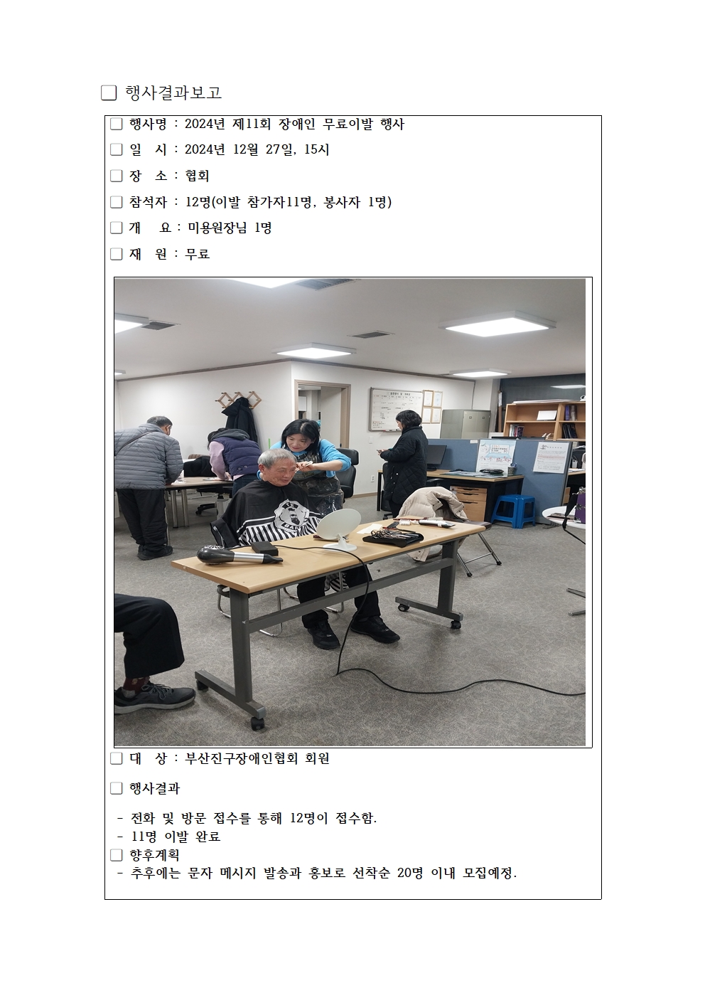 2024년 12월 마지막 무료이발 행사를 실시하였습니다.