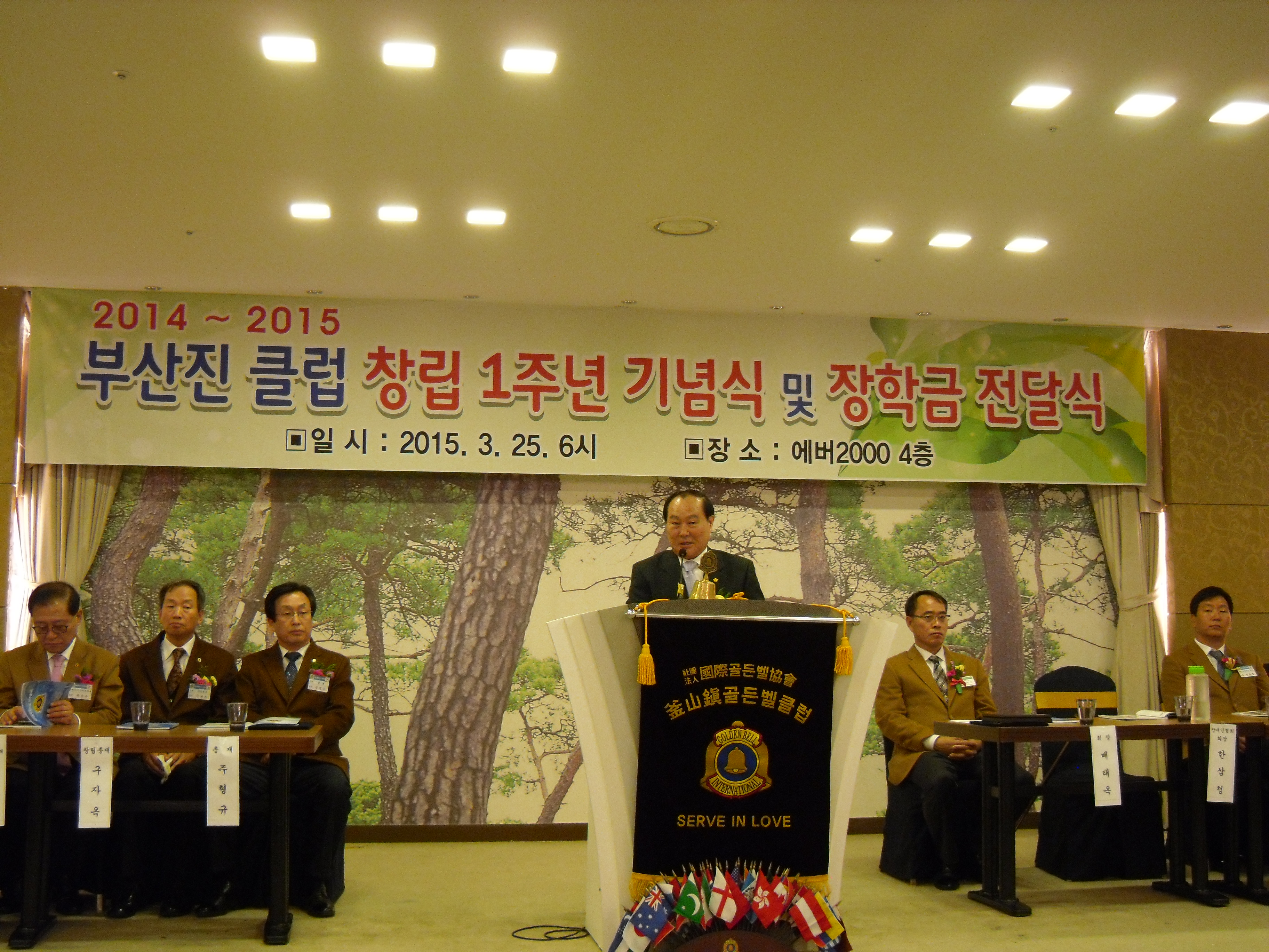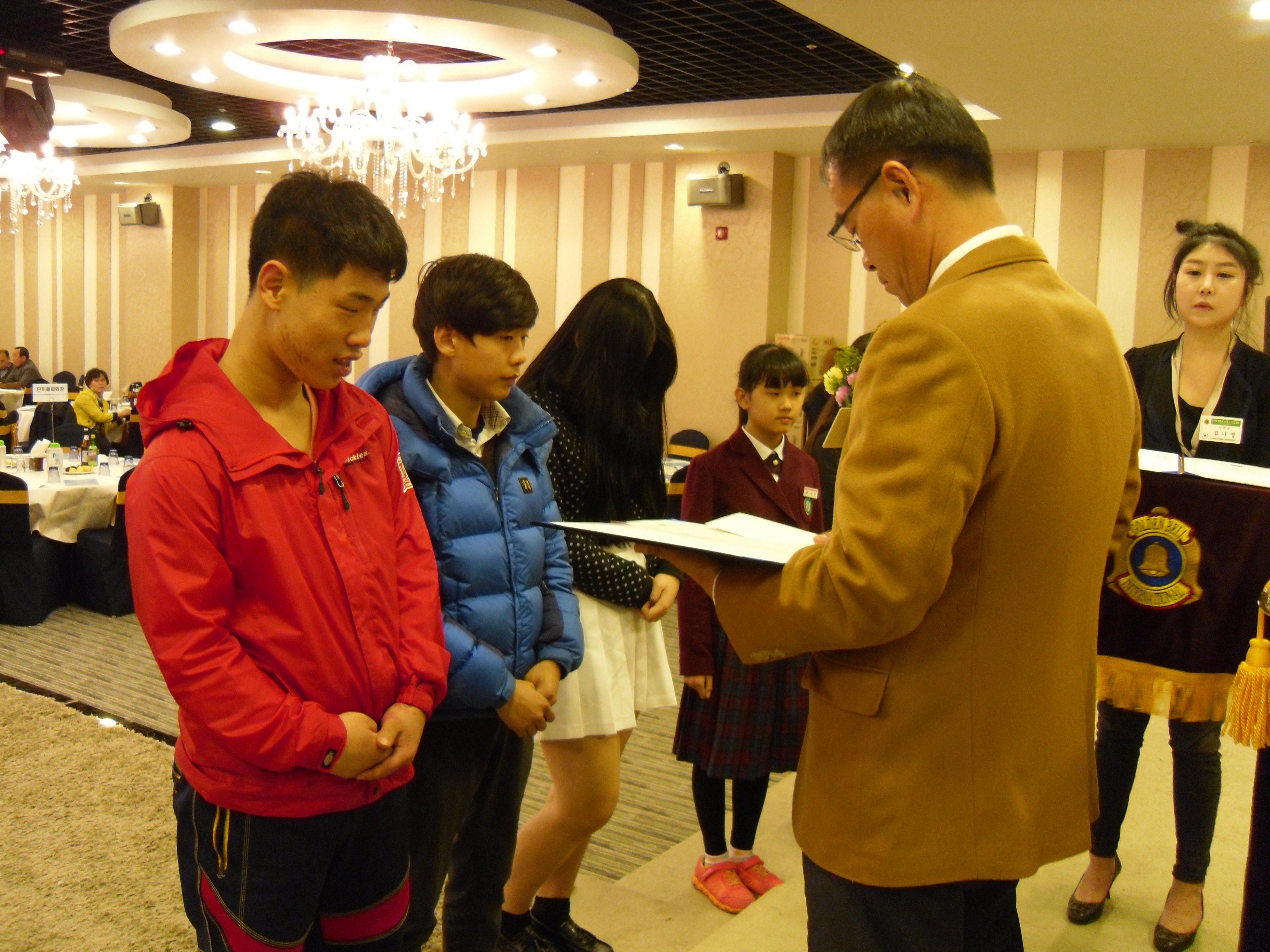 2015.3.25. 부산진골든벨클럽 1주년 기념식에서 부산진구장애인협회회원의 자녀5명(조홍대,정욱진.유가연.황수빈.정현정)에게 부산진골든벨클럽 배태욱회장님이 장학금을 전달하였다.