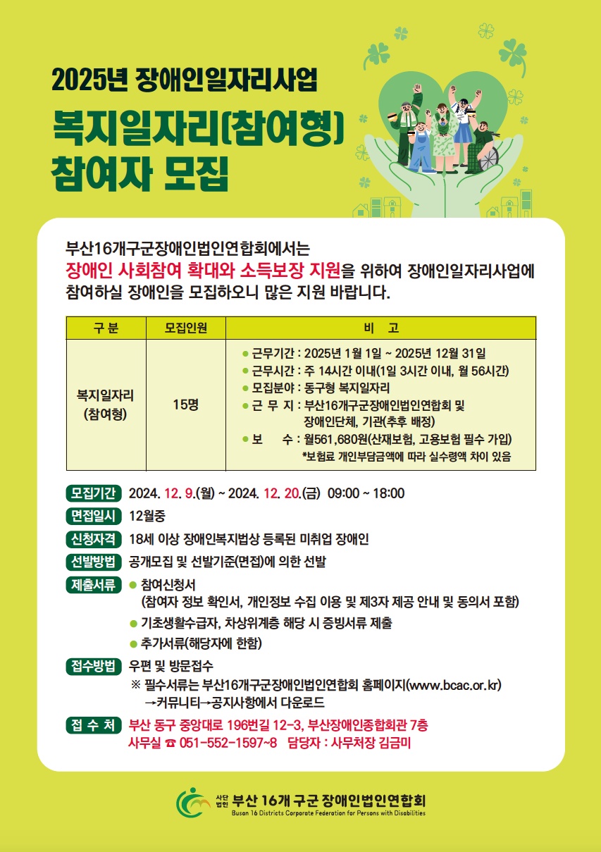 2025년 장애인일자리사업 복지일자리(참여형) 참여자 모집