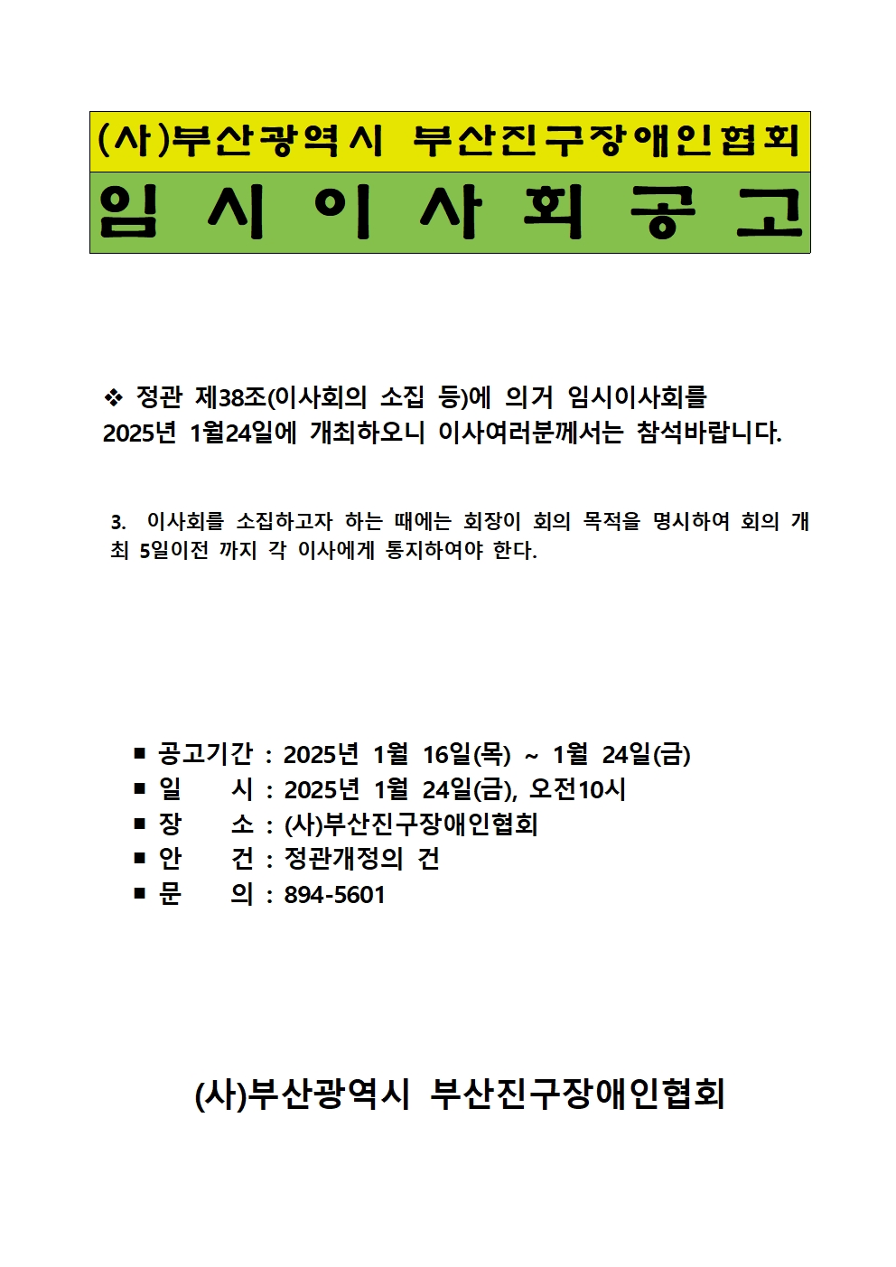2025년 임시이사회공고