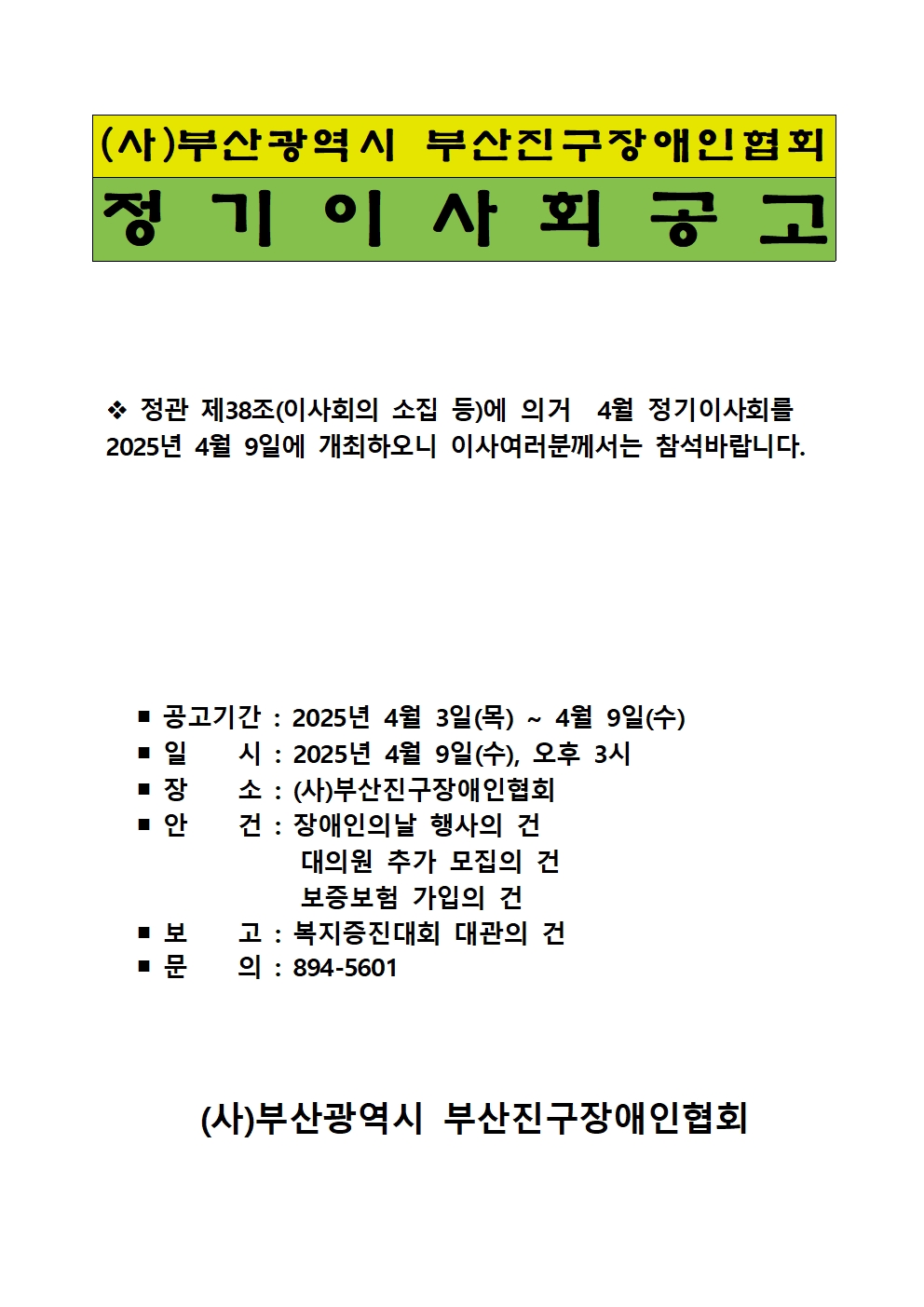 4월 정기 이사회 소집