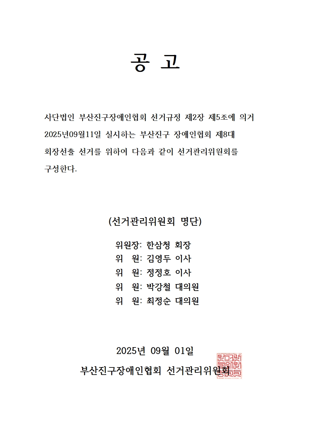 부산진구장애인협회 선거관리위원회 구성