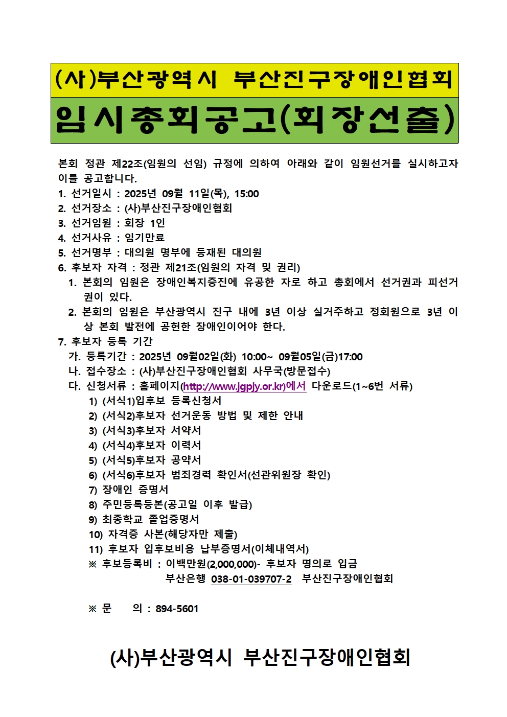 임시총회 공지(정견발표)