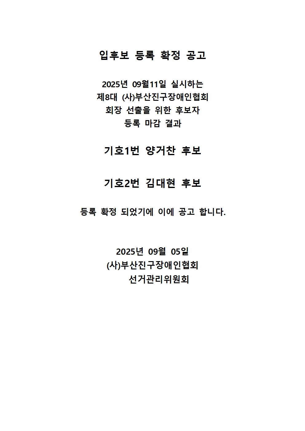 입후보 등록 확정